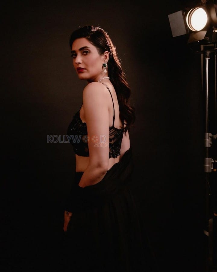 You are viewing an image of Sexy Karishma Tanna in a Golden Shimmering Black Saree Photos 03 in KollywoodZone.com Photo Gallery