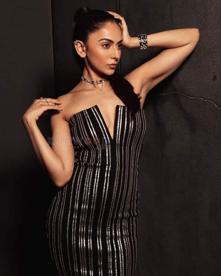 You are viewing an image of Sexy Rakul Preet Singh in a Black and White Bodycon Dress Photos 04 in KollywoodZone.com Photo Gallery