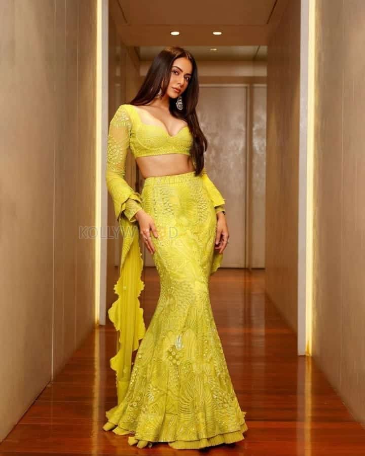 You are viewing an image of Sexy Rakul Preet Singh in a Neon Yellow Lehenga Photos 01 in KollywoodZone.com Photo Gallery