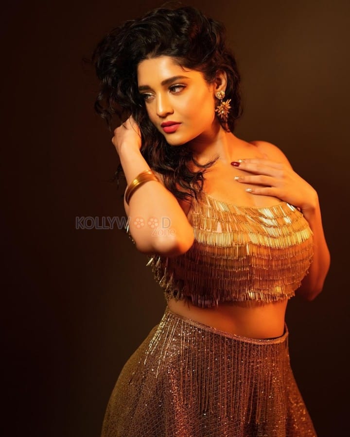 You are viewing a picture of Sexy Ritika Singh in a Golden Metallic Crop Top Pictures 04 in KollywoodZone.com Photo Gallery.