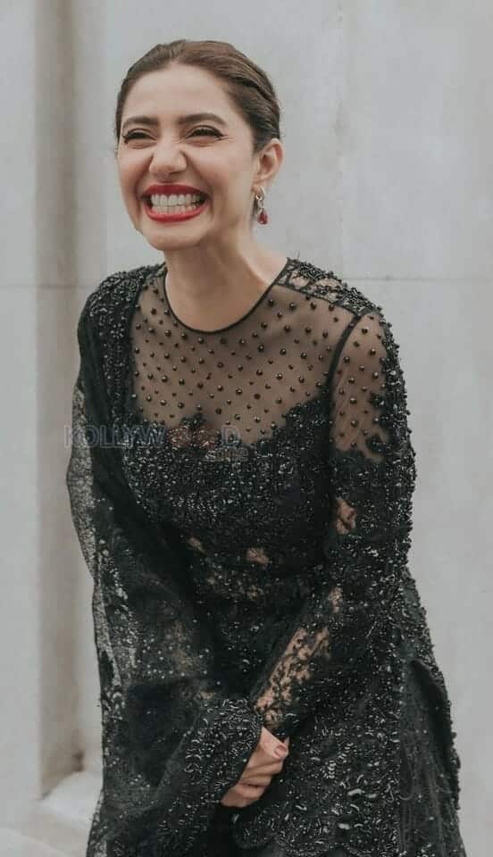 You are viewing a picture of Smiling Mahira Khan in a Black Netted Dress Photo 01 in KollywoodZone.com Photo Gallery.