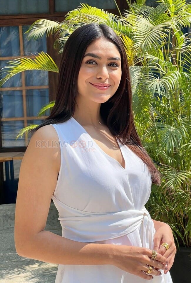 You are viewing a picture of Smiling Mrunal Thakur in White Picture 01 in KollywoodZone.com Photo Gallery.