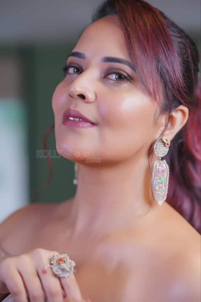 You are viewing a picture of Spicy Anasuya Bharadwaj in Off Shoulder Cream Top Photos 01 in KollywoodZone.com Photo Gallery.