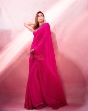 Desi Beauty Kriti Sanon in a Pink Saree with Matching Sleeveless Pink Bralette showing Cleavage Pictures 06