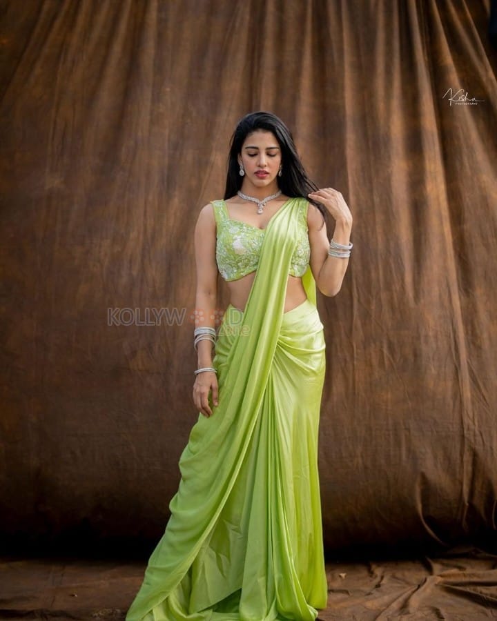 You are viewing an image of Stylish Daksha Nagarkar in a Green Saree Photos 02 in KollywoodZone.com Photo Gallery