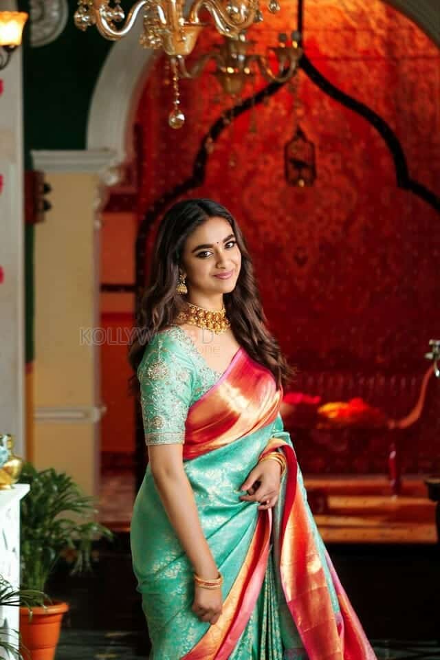 You are viewing an image of Tamil Heroine Keerthy Suresh in a Red Silk Saree Photos 02 in KollywoodZone.com Photo Gallery