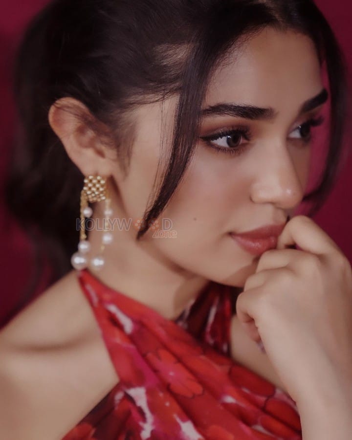 You are viewing an image of Telugu Actress Krithi Shetty in a Red Cutout Halter Neck Top and Black Skirt Pictures 06 in KollywoodZone.com Photo Gallery