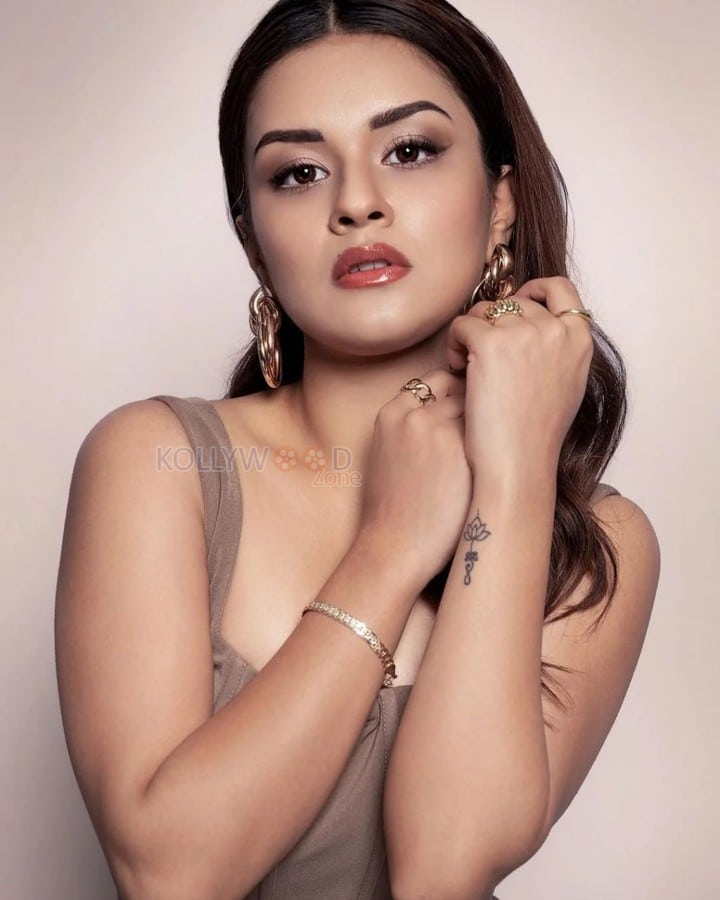 You are viewing an image of Tiku Weds Sheru Star Avneet Kaur in a Brown Scuba Georgette Cropped Jacket Set Photos 02 in KollywoodZone.com Photo Gallery