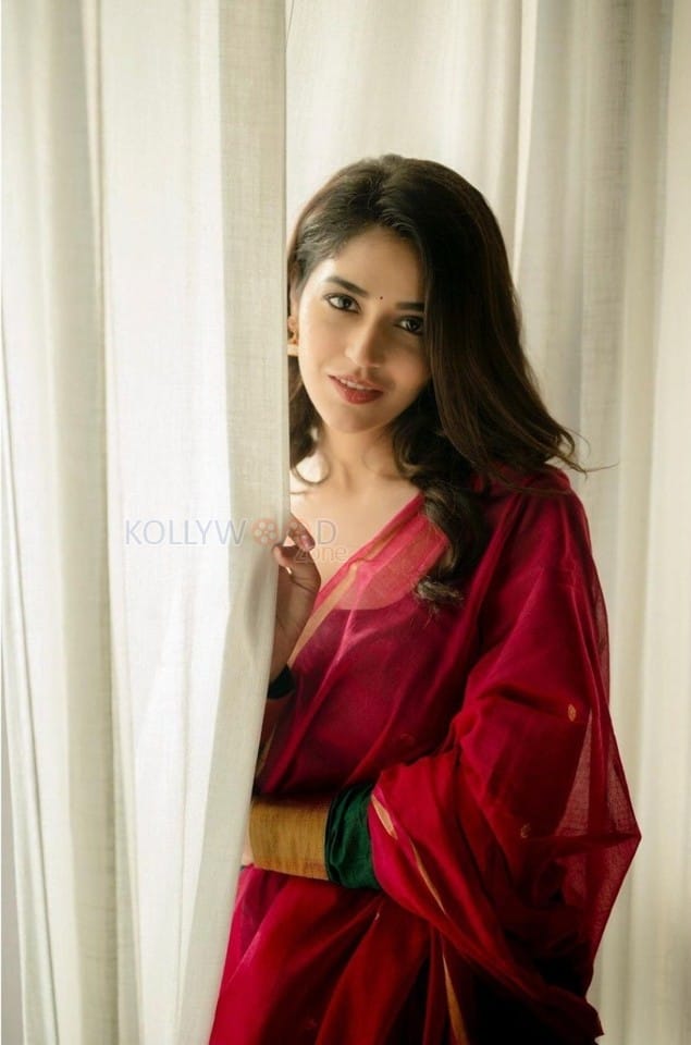 You are viewing a picture of Tollywood Heroine Priyanka Jawalkar in a Maroon Cotton Saree Photos 01 in KollywoodZone.com Photo Gallery.
