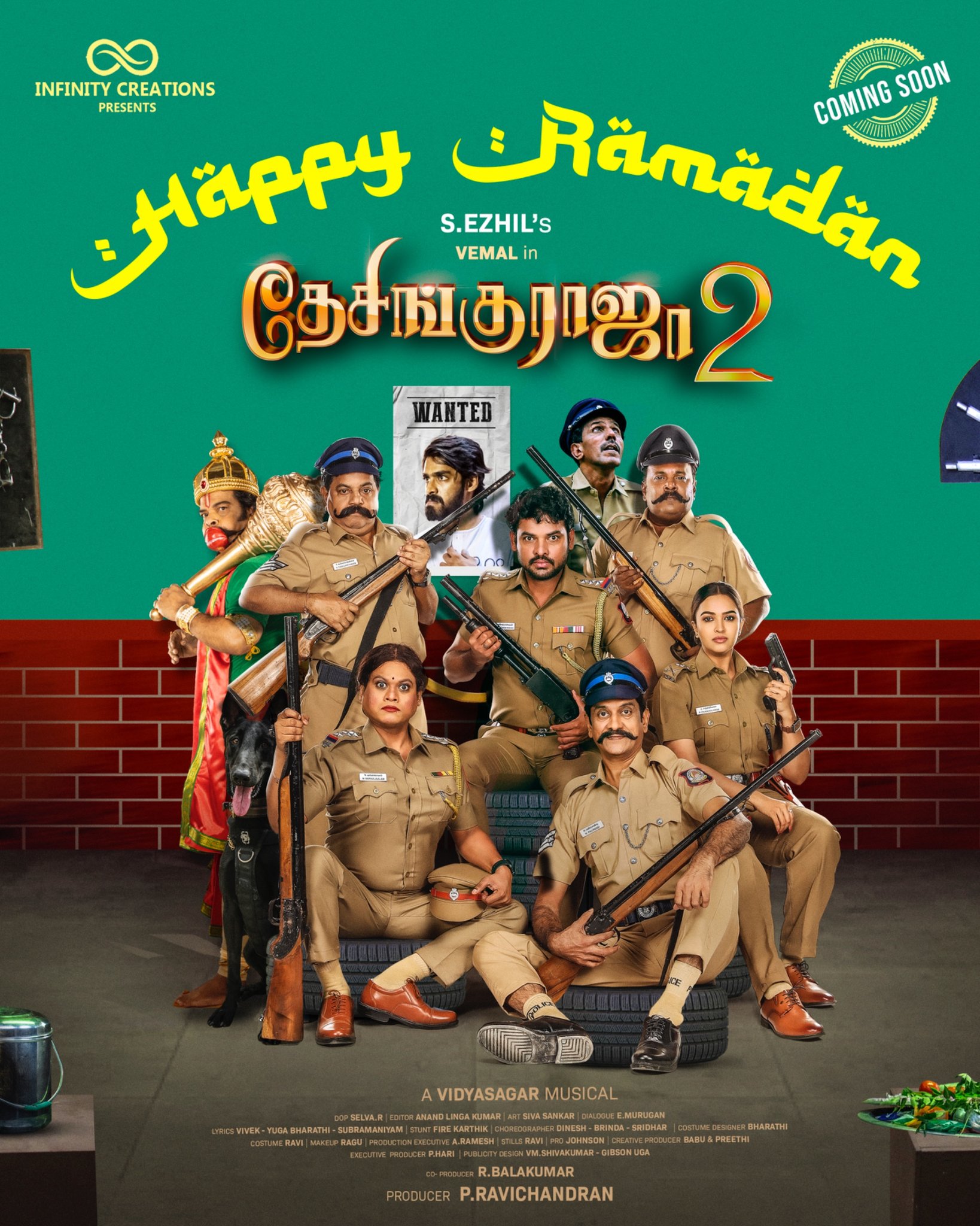 The special poster shared by the actor has him dressed as a cop sitting alongside a bunch of cops with guns in their hands. Cook With Comali fame Pugazh is seen in a woman getup. Apart from Vemal and Pujita Ponnada, the casting unit of Desingu Raja 2 also has actors Singampuli, Sneha Gupta, Cook With Comali fame Pugazh, Ravi Maria, Harshitha, Robo Shankar, Redin Kingsley, Chaams, Madhumitha, Vinoth, Muthu, Swaminathan, Sumathi G, and Motta Rajendran portraying various supporting characters.
