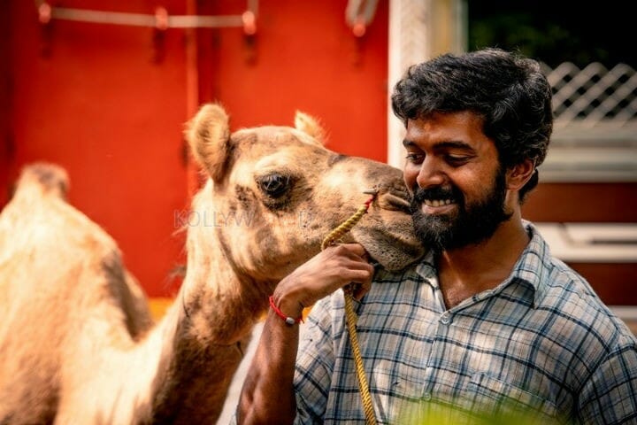 Rathinam (Vikranth), an innocent farmer wins his share of his ancestral land after a legal battle with his elder brother. He desires to start farming in the piece of land that he has won but lacks the financial source to do so. So he decides to approach the bank to apply for a loan to begin farming. But the officer in the bank tells him that he wants to see some ongoing works on the field in order to sanction him a loan. But to do that Rathinam needs money. His friend (Dinesh Prabhakar) points him to a moneylender who happens to be a Muslim whose family is getting ready to celebrate Bakrid. When Rathinam arrives at the moneylender’s home he witnesses a camel and its offspring. He also notices the moneylender yelling at his people for bringing home the offspring along with the mother as it will be morally disturbing to slaughter the camel in front of its own offspring.