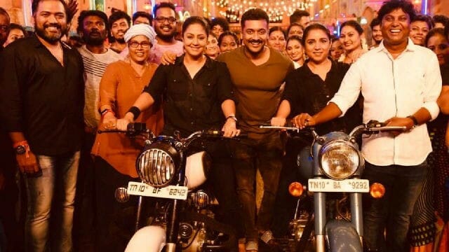 The cinematography for the film is done by Ananda Kumar while the film is trimmed by Editor Vijay Velukutty. Music director Vishal Chandrasekar has been roped in to compose the music for the film. On the last day of the shoot which was on roll in Binny mills, actor Suriya gave a pleasant surprise to the team by paying a visit to the set. A snap clicked during the visit of the actor with the whole team behind actors Suriya, Jyothika and Revathi went viral on the internet. The background appeared as a festival set up developed for a song sequence as dance master Brinda was on the spot.