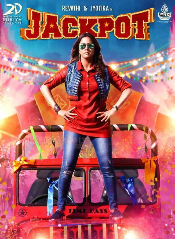 Actress Jyothika had a great weekend last week with her family in New Delhi as she witnessed her son outdo 40 plus contestants from Tamil Nadu to win the National Level Karate championship. The couple who put aside all their work to attend their son’s sport event is back to work now. Actor Suriya has rejoined the sets of Sorarai Pottri which is directed by Irudhi Suttru fame director Sudha Kongara. Now actress Jyothika’s first look of her film titled as Jackpot with Revathi is out now.