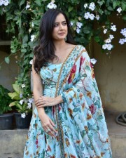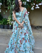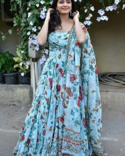 Rising Beauty Ashika Ranganath in a Light Blue Floral Embroidered Top with Flowing Palazzo Pants Photos 02