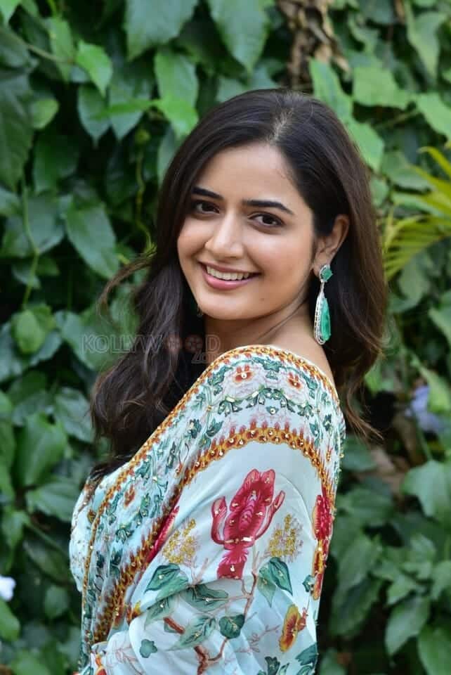 Rising Beauty Ashika Ranganath in a Light Blue Floral Embroidered Top with Flowing Palazzo Pants Photos 02