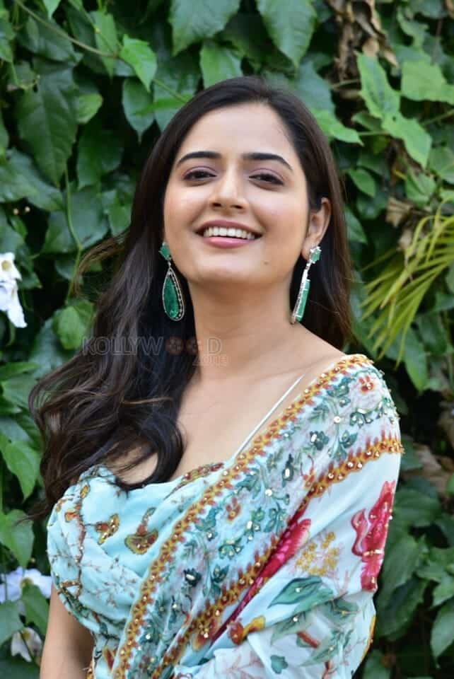 Rising Beauty Ashika Ranganath in a Light Blue Floral Embroidered Top with Flowing Palazzo Pants Photos 02