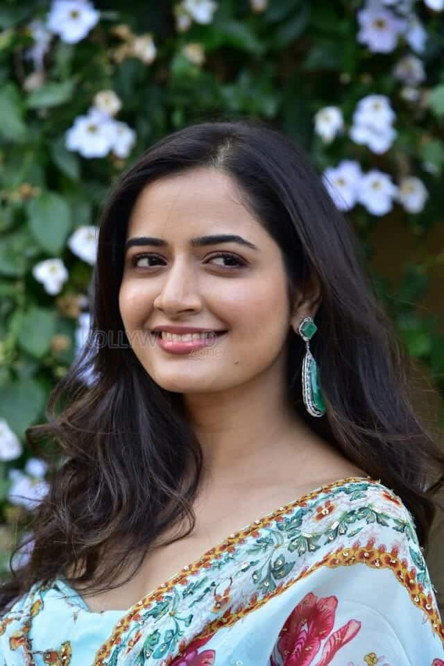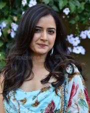 Rising Beauty Ashika Ranganath in a Light Blue Floral Embroidered Top with Flowing Palazzo Pants Photos 02