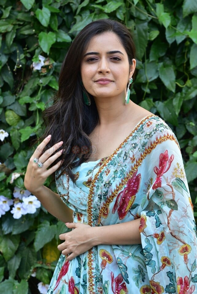 Rising Beauty Ashika Ranganath in a Light Blue Floral Embroidered Top with Flowing Palazzo Pants Photos 02