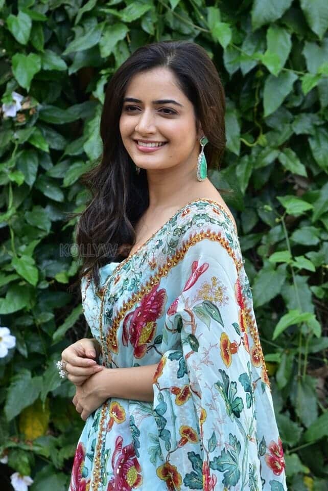 Rising Beauty Ashika Ranganath in a Light Blue Floral Embroidered Top with Flowing Palazzo Pants Photos 02