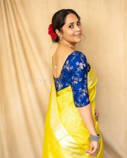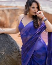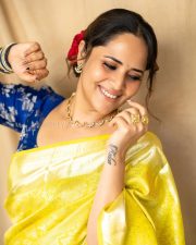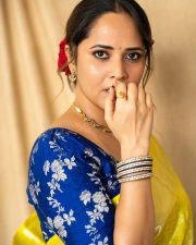 Royal Glamour Anasuya Bharadwaj in a Maroon Benaras Saree with a Strapless Yellow Bralette Photos 02