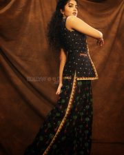 Actress Anupama Parameswaran in a Black Sleeveless Tree of Hearts Top with a Matching Palazzo Pants Photos 03