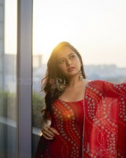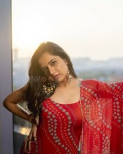 Beautiful Kannada Actress Ashika Rangnath in a Green Lehenga Saree with a Matching Embellished Blouse Pictures 08