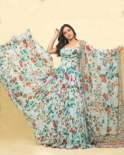 Rising Beauty Ashika Ranganath in a Light Blue Floral Embroidered Top with Flowing Palazzo Pants Photos 02