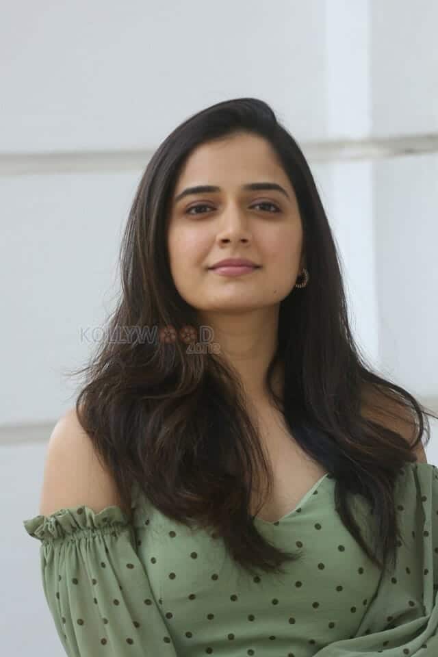 Beautiful Kannada Actress Ashika Rangnath in a Green Lehenga Saree with a Matching Embellished Blouse Pictures 07