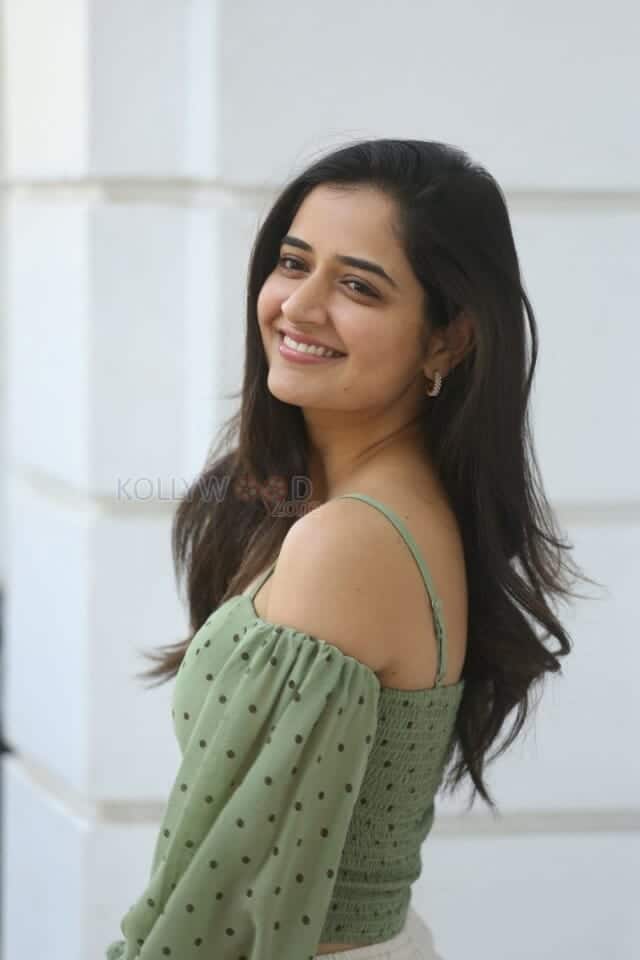 Beautiful Kannada Actress Ashika Rangnath in a Green Lehenga Saree with a Matching Embellished Blouse Pictures 07