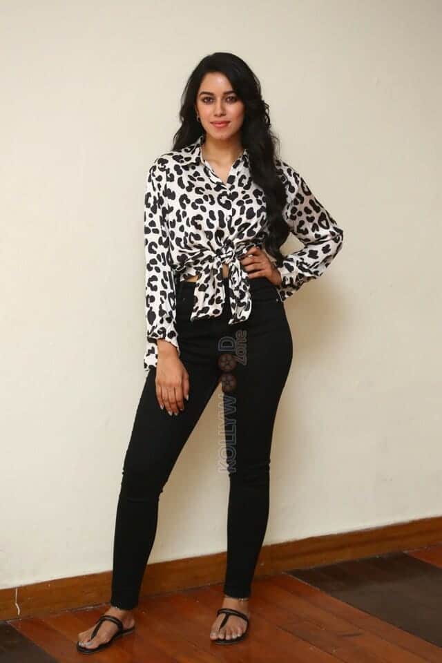 You are viewing an image of Actress Mirnalini Ravi in Black Dotted Shirt Photoshoot Stills 24 in KollywoodZone.com Photo Gallery