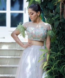 Sparkling Mallu Babe Saniya Iyappan in a Blue Saree with a Sleeveless Spaghetti Strap Bralette Photos 01