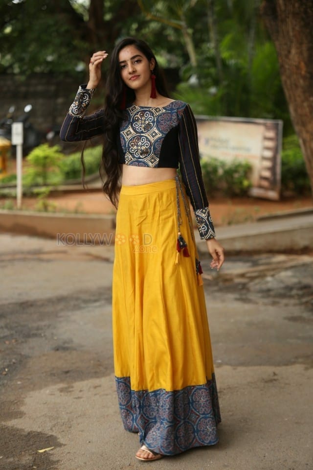 Sexy Simrat Kaur in a Red Embroidered Satin Maroon Skirt with a Bustier Blouse with Ruffed Hand Trail Photos 02