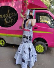 You are viewing an image of Adah Sharma Wearing A Newspaper Gown And Showing Cleavage On The Red Carpet Stills 02 in KollywoodZone.com Photo Gallery