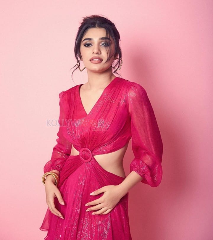 You are viewing an image of Adorable Krithi Shetty in a Pink Cut Out Thigh Slit Dress Photos 01 in KollywoodZone.com Photo Gallery