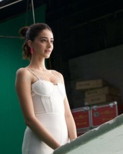 Actress Ananya Panday in an Embellished Corset Midi Dress with a Light Brown Trench Coat Pictures 02