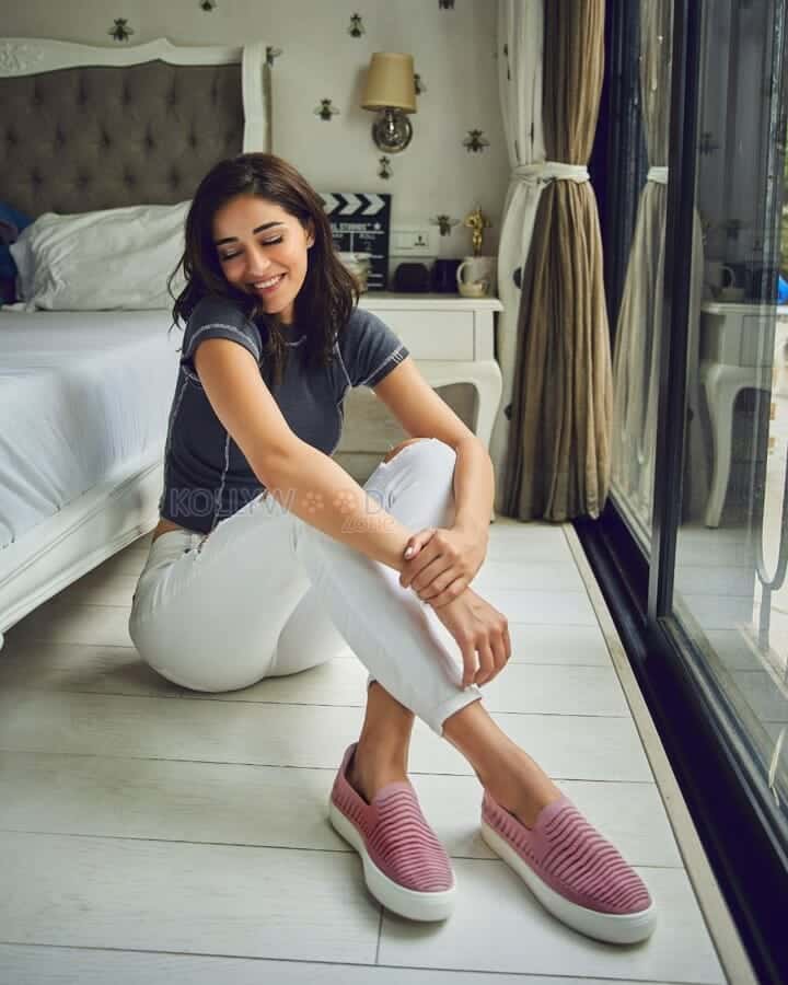You are viewing a picture of Ananya Panday sitting near the bed in a white pant photo 01 in KollywoodZone.com Photo Gallery.