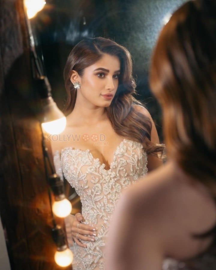 You are viewing an image of Azaad Heroine Rasha Thadani in a Sparkling White Lace Floor Length Dress Photos 04 in KollywoodZone.com Photo Gallery