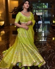 Sexy Telugu Heroine Sreeleela in a Black and White Polka Dotted Crop Top and High Waisted Trousers with a Black Jacket Photos 03