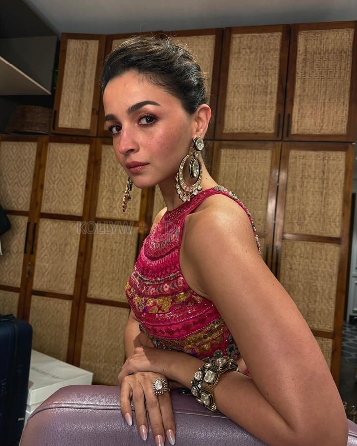 You are viewing a picture of Beautiful Alia Bhatt in a Fuchsia Pink Lehenga at Manish Malhotra Diwali Bash Party Photos 03 in KollywoodZone.com Photo Gallery.