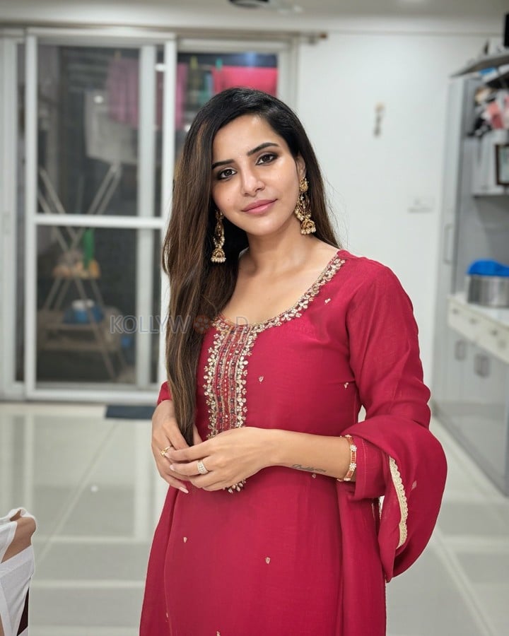 You are viewing an image of Beautiful Ashu Reddy in a Red Kurta Suit Photos 03 in KollywoodZone.com Photo Gallery