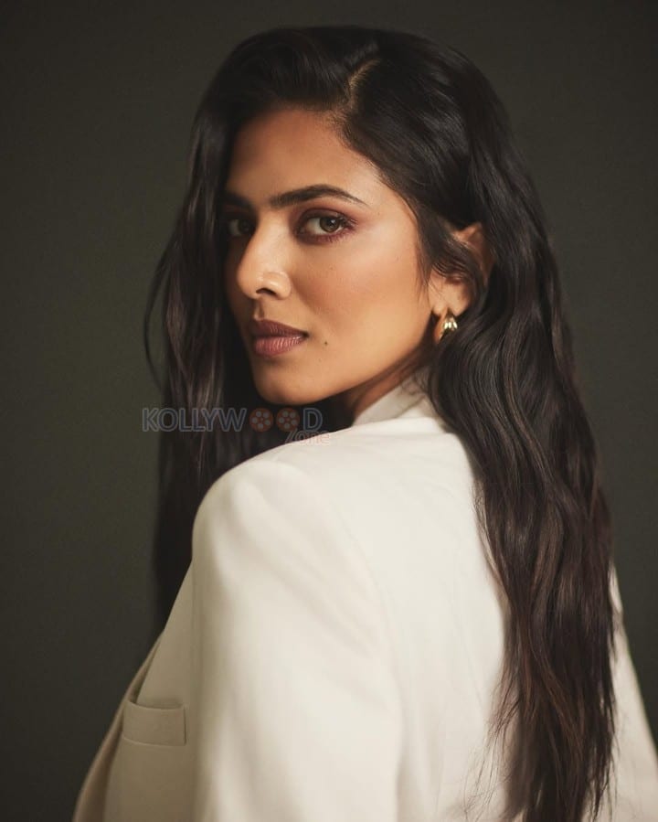 You are viewing an image of Beautiful Malavika Mohanan in an Off White Bralette with a See Through Top and Trench Coat with White Pants Photos 03 in KollywoodZone.com Photo Gallery