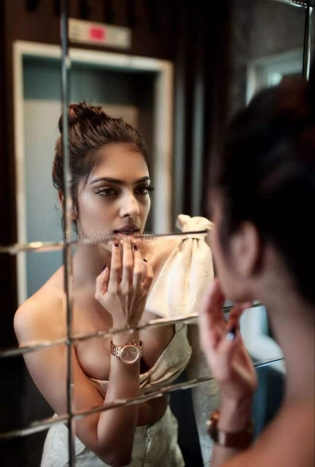 You are viewing a picture of Beautiful Malavika Mohanan Looking at the Mirror Photo 01 in KollywoodZone.com Photo Gallery.