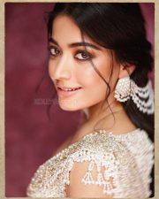 You are viewing an image of Beautiful Rashmika Mandanna in a Dark Blue Printed Saree with Sleeveless Blouse Photos 07 in KollywoodZone.com Photo Gallery