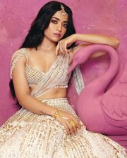 You are viewing a picture of Beautiful Rashmika Mandanna in a Dark Blue Printed Saree with Sleeveless Blouse Photos 07 in KollywoodZone.com Photo Gallery.