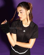 You are viewing an image of Beautiful Saiee Manjrekar in a Red Long Gown with a Thigh Slit and High Neckline Photos 08 in KollywoodZone.com Photo Gallery