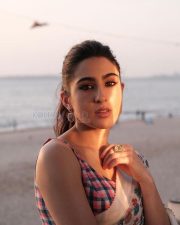 You are viewing an image of Beautiful Sara Ali Khan in a White Floral Saree with Pink and Blue Sleeveless Blouse Pictures 03 in KollywoodZone.com Photo Gallery