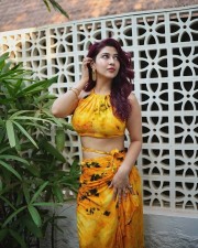 Devon Ke Dev Mahadev Actress Sonarika Bhadoria in a Golden Embroidered Square Neckline Blouse with a Matching Lehenga Skirt and Sheer Dupatta Pictures 03