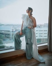 You are viewing an image of Breathtaking Tamannaah Bhatia in a Ruffled One Shoulder White Top with Ripped Denim Jeans Photos 03 in KollywoodZone.com Photo Gallery