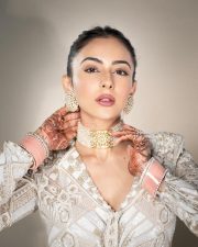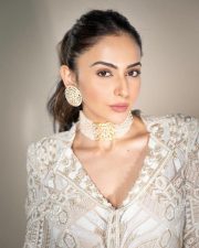 Uber Chic Rakul Preet Singh in a Falguni Shane Peacock Outfit with a Formal White Shirt Black Shorts and Shimmering Black Jacket Photos 03