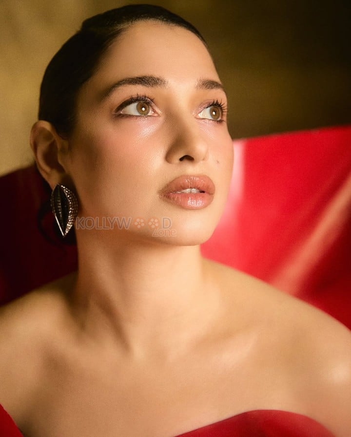 You are viewing an image of Captivating Tamannaah Bhatia in a Black and Red Off Shoulder Dress Photos 02 in KollywoodZone.com Photo Gallery